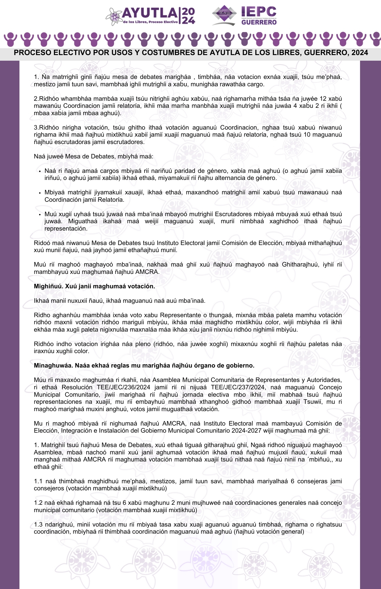 Promocional Proceso Electivo de Ayutla de los Libres 2024 en Mixteco