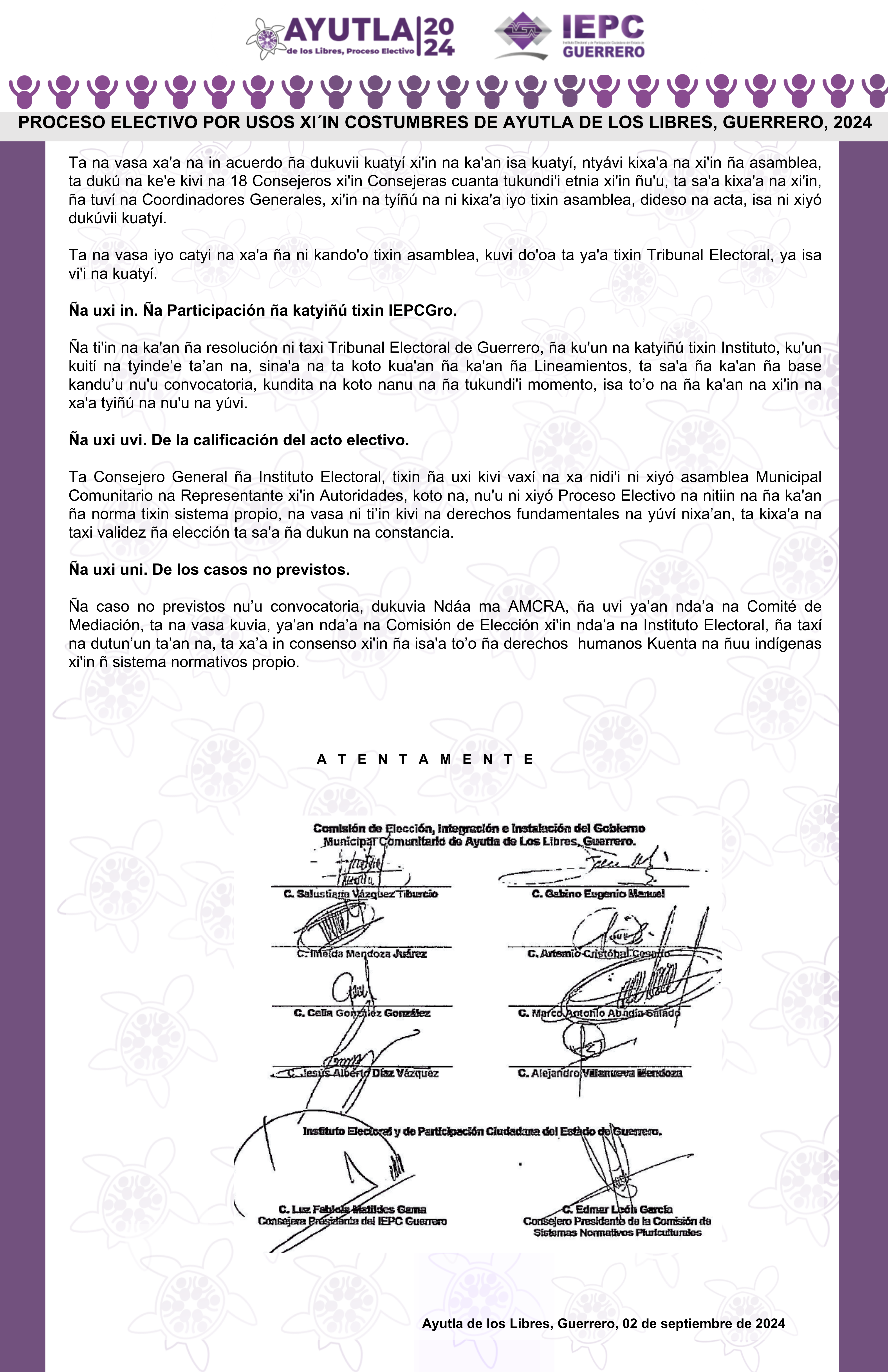 Integración de la Comisión de elección, integración, instalación del Gobierno Municipal del Municipio Nuu Savi, Guerrero