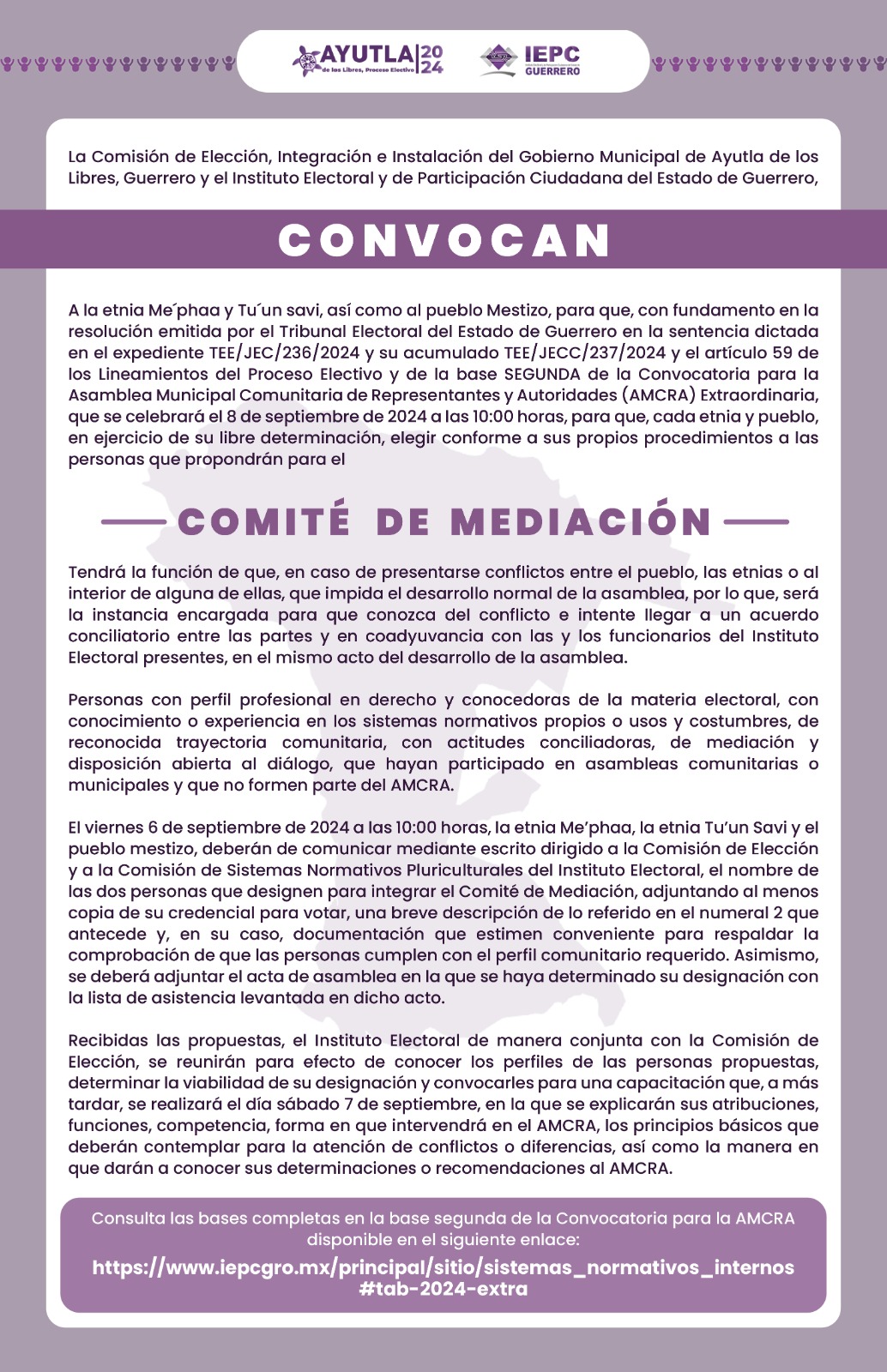 | Convocatoria para la Asamblea Municipal Comunitaria de Representantes y Autoridades del 27 de octubre de 2024 (Me'pháa) | Descargar | |